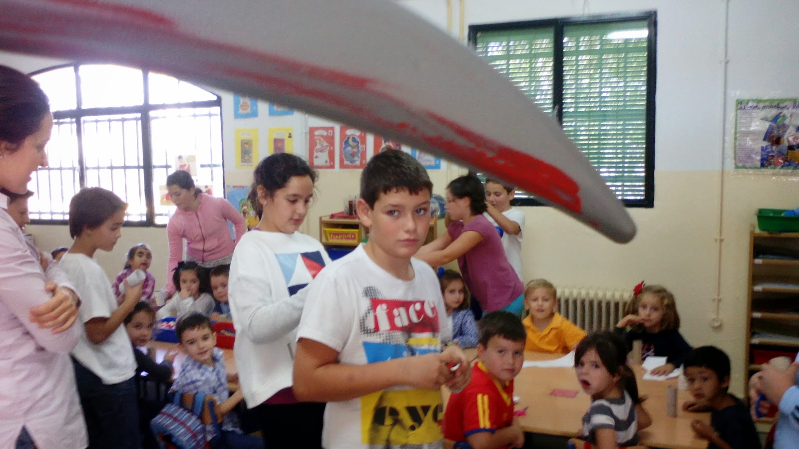 Los alumnos de quinto y sexto de educación primaria se inventaron cuentos para recrear a los alumnos de educación infantil. Posteriormente hicieron diferentes talleres de manualidades. Elaboraron una momia con rollos de papel higiénico, caretas y fichas para colorear del tema de Hallowen.